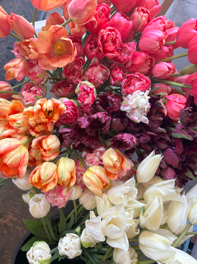 DIY buckets and arrangements will include whatever is blooming the best at the time of your event within your desired color palette! Farm flowers and arrangements are offered at a reduced price point compared to our full-service event designs due to the increased flexibility of floral elements. If you have a favorite bloom let us know in your message though we cannot guarantee specific floral varieties.